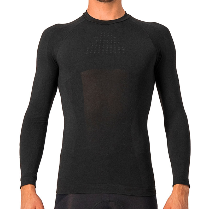 La camiseta interior Castelli Core Seamless Base Layer es ideal para climas fríos. Fabricada sin costuras para una comodidad excepcional, es sorprendentemente cálida en comparación con su bajo peso. Sus costados y respaldo menos gruesos permiten un excelente control de la humedad para permanecer seco durante toda la salida. Por último, su cuello ancho se adapta perfectamente a los maillots sin cuello.