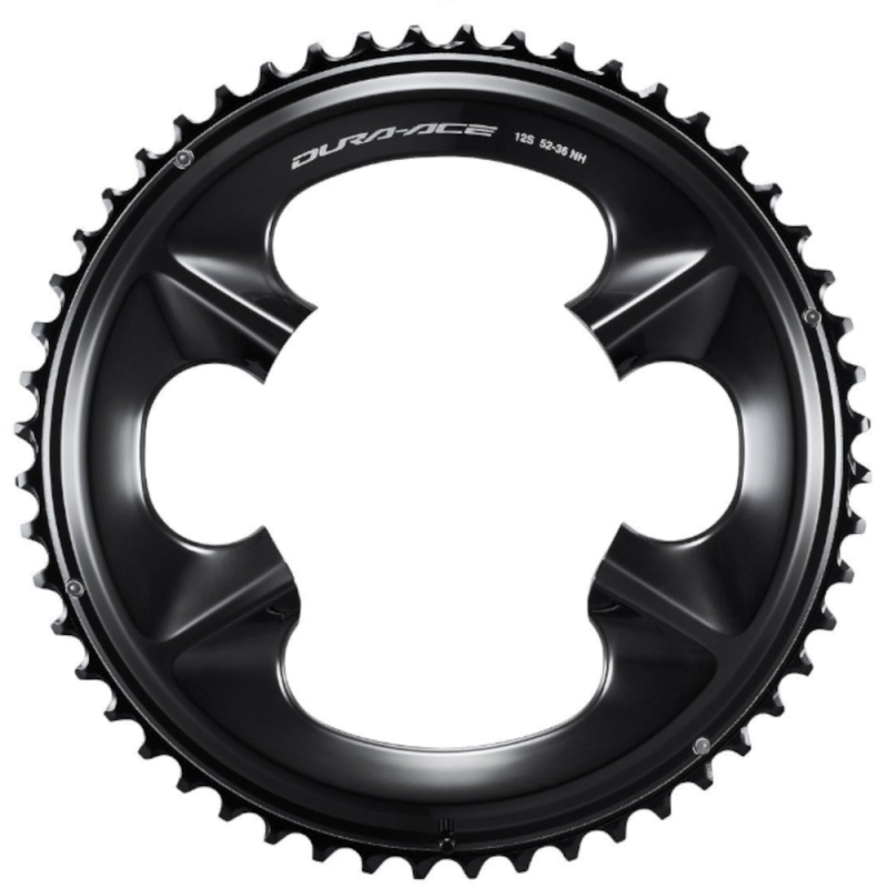 Aquí se ofrece el plato grande Shimano FC-R9200 como modelo de exposición, un plato desmontado de una bicicleta que nunca se ha utilizado. Es exclusivamente compatible con el juego de bielas de carretera de la misma marca serie Dura Ace R9200 de 12 velocidades, así como con el juego de bielas con medidor de potencia Dura Ace FC-R9200-P.