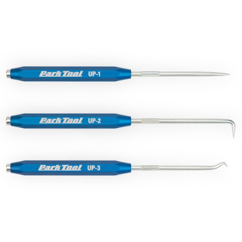Este kit Park Tool UP-SET incluye 3 ganchos Park Tool. Serán perfectos para realizar muchos trabajos de precisión, teniendo cada uno una forma diferente, se complementarán muy bien. Encontrarás 1 gancho, 1 gancho recto y 1 gancho de 90°.