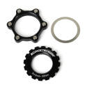 El adaptador EXCESS permite montar un disco de montaje ISO de 6 tornillos en un buje con sistema Center Lock, ofreciendo así compatibilidad entre estas dos tecnologías. Gracias a su placa antiaflojamiento, asegura un bloqueo seguro del disco, garantizando una fijación fiable incluso en las condiciones más exigentes, como vibraciones o esfuerzos intensos. Este innovador sistema también facilita la instalación y extracción rápida de discos, haciendo que las operaciones de mantenimiento y cambio de configuración sean más simples y eficientes. Una solución ideal para combinar rendimiento y practicidad.