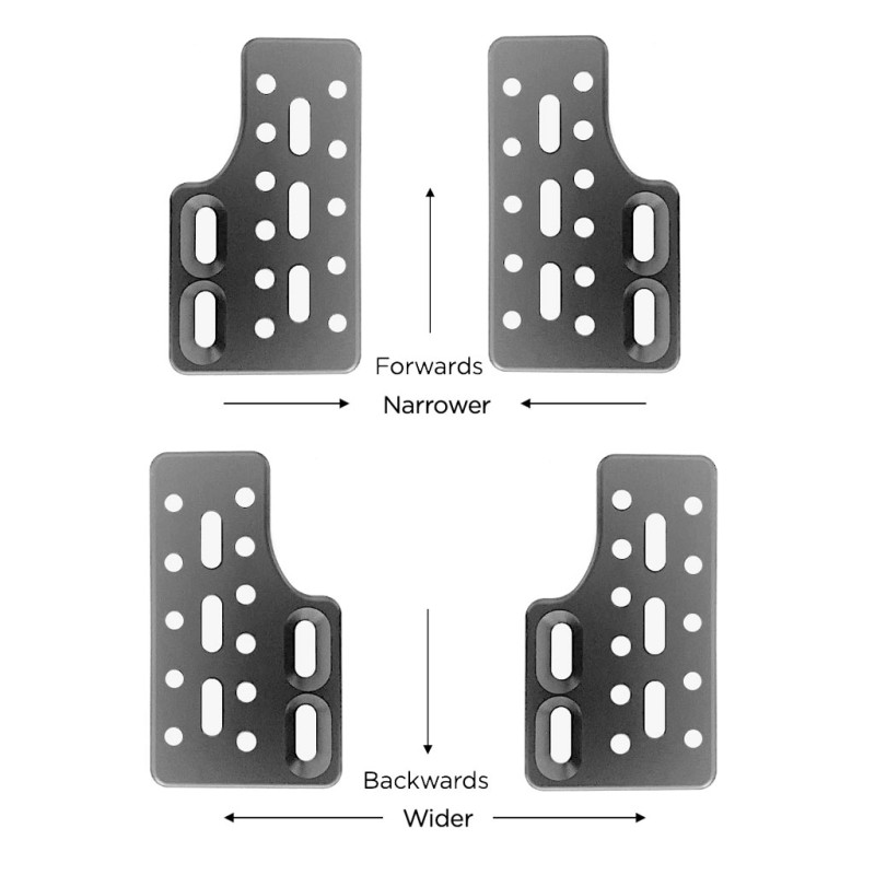 Optimiza tu posición aerodinámica con precisión con las placas de extensión reversibles FastTT, un accesorio esencial para triatletas y especialistas en contrarreloj que buscan ajustes precisos. Estas placas de aluminio mecanizadas en CNC te permiten ajustar la posición de tus prolongadores aerodinámicos y reposabrazos, tanto longitudinalmente como lateralmente, para acercarlos o alejarlos.