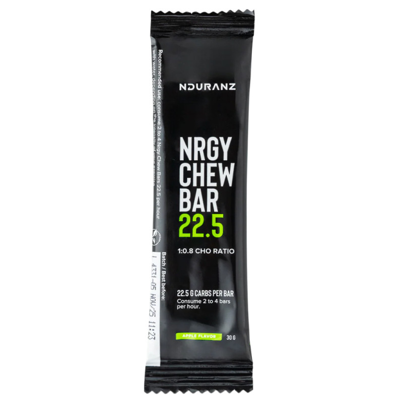 Sin electrolitos, se integra fácilmente en tu plan nutricional junto con bebidas o geles. Cumple con las normas antidopaje y es 100% vegana, ofreciendo energía fiable y responsable, disponible en cada momento de tu entrenamiento. Disfrútala al instante o llévala contigo: práctica y eficaz, la barrita Nrgy Chew Bar de manzana es el pequeño impulso inteligente para combatir la fatiga.