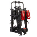 La plataforma se puede inclinar para facilitar el acceso al maletero cuando las bicicletas están montadas, lo cual resulta muy práctico durante los viajes. Este portabicicletas es plegable, lo que lo hace muy compacto cuando no se utiliza. Por lo tanto, se puede guardar fácilmente en el maletero del coche o en el garaje.