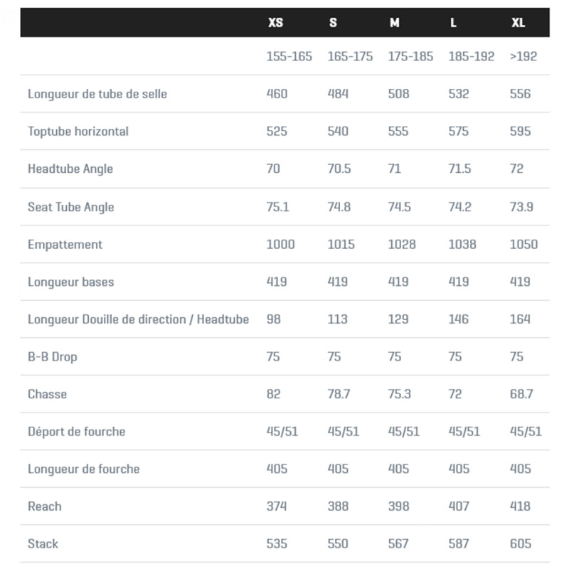 - Horquilla : Allroad EVO, HM2X de carbono, sistema de cableado interno ICS2, cónica de 1-1/8" - 1-1/2", Flat Mount estándar de 140 mm. Disco de 160 mm, cubierta máxima de 700x45c, horquilla Flip-Chip ajustable de 45-51 mm de inclinación, eje a corona de 405 mm, eje pasante de 12x100 mm
