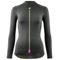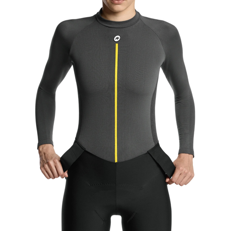 La Assos Spring Fall LS Skin Layer P1 es la primera capa ideal para salidas con temperaturas bajas, entre 5 y 10 grados Celsius. Diseñada como una segunda piel, esta capa base de manga larga cubre completamente el torso y los brazos para una termorregulación óptima. Más ligera que la generación anterior, incorpora un gradiente de aislamiento inteligente. Un tejido más denso y aislante en la parte delantera y el cuello protege del frío, mientras que una estructura más abierta en la espalda y las axilas permite una rápida absorción del calor y la humedad.