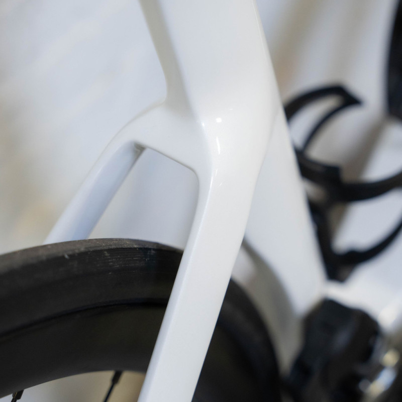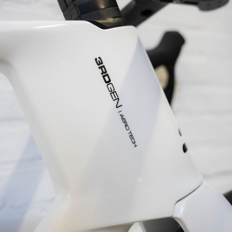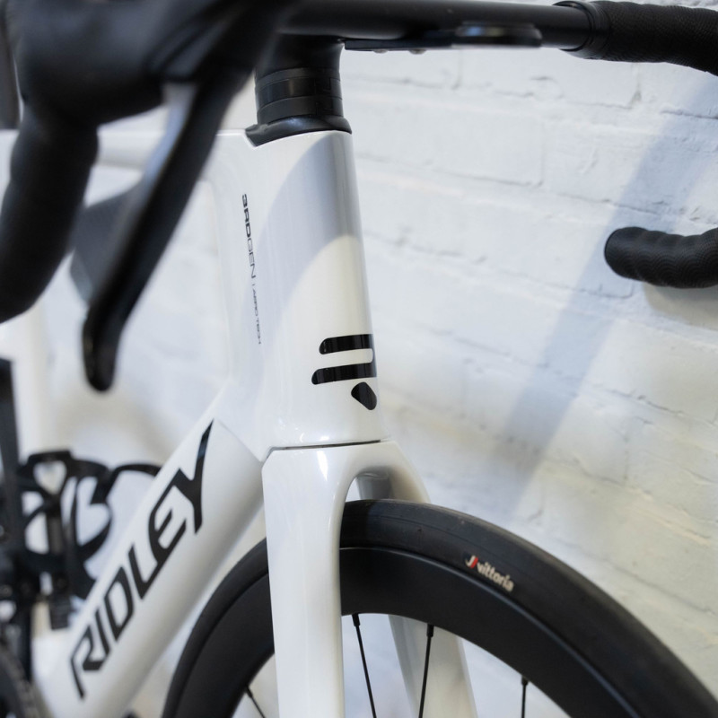 Esta Ridley Noah 3.0 Pearl White es una bicicleta de carretera diseñada para ciclistas exigentes que buscan un rendimiento aerodinámico excepcional. Con su elegante y refinado acabado Pearl White, esta bicicleta está fabricada sobre un cuadro de carbono monocasco F-RAM ultraligero. Su geometría agresiva promueve una posición de carrera adelantada y reduce significativamente la resistencia aerodinámica (hasta un 15 % en comparación con la generación anterior). Esta bicicleta también destaca por sus tubos extra anchos, especialmente debajo del manillar, con tecnología de tercera generación, para lograr el mejor coeficiente aerodinámico posible.
