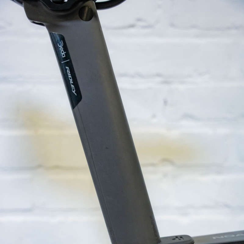 La Ridley Noah 3.0 es una bicicleta de carretera diseñada para ciclistas exigentes que buscan un rendimiento aerodinámico excepcional. Con un elegante y refinado acabado Black Oil Slick, esta bicicleta está fabricada sobre un cuadro de carbono monocasco F-RAM ultraligero. Su geometría agresiva promueve una posición de carrera adelantada y reduce significativamente la resistencia aerodinámica (hasta un 15 % en comparación con la generación anterior). Esta bicicleta también destaca por sus tubos extra anchos, especialmente debajo del manillar, con tecnología de tercera generación, para lograr el mejor coeficiente aerodinámico posible.
