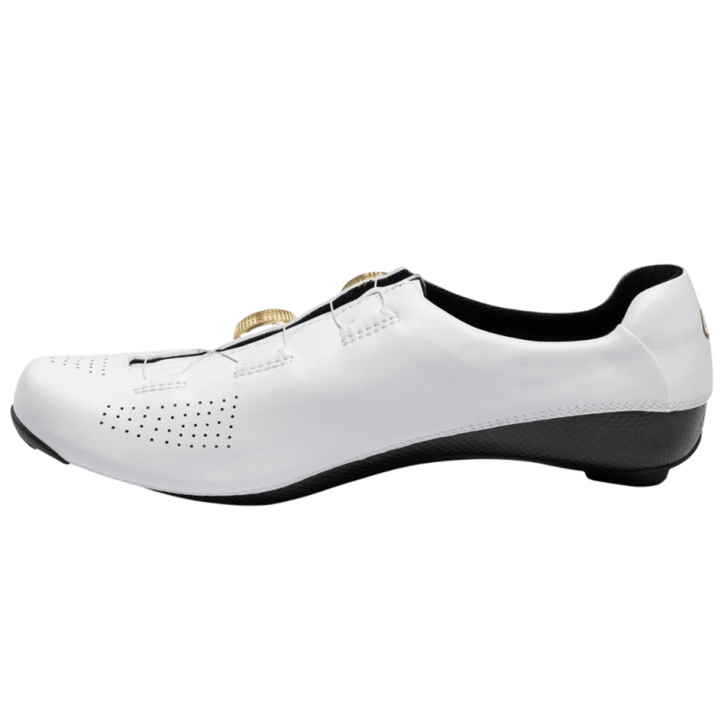 Utilizadas por muchos ciclistas profesionales que compiten en el Tour de Francia, estas zapatillas Nimbl Ultimate White Gold son de gama alta. Están diseñadas para optimizar la conexión entre el ciclista y su bicicleta. La suela de carbono proporciona una rigidez adicional para una transmisión de potencia inigualable a los pedales. El chasis monocasco de carbono garantiza una mayor rigidez y una reducción de peso.
