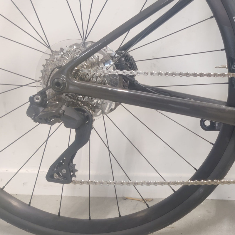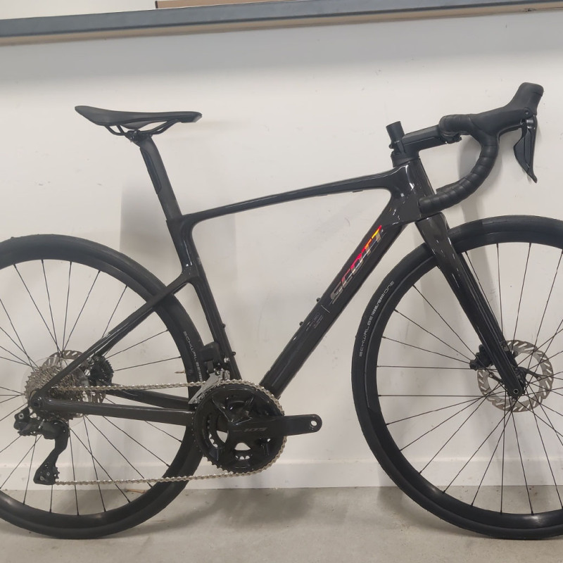 Equipada con el grupo Shimano 105, reconocido por su fiabilidad y robustez, esta bicicleta garantiza cambios suaves y frenos de disco potentes y seguros. Las ruedas Syncros PR 2.0 garantizan una excelente estabilidad y un rendimiento constante en todo tipo de terrenos. Con solo 700 km recorridos, esta Scott Addict 40 está prácticamente nueva y ha sido completamente renovada por nuestros expertos. Una opción ideal para disfrutar de la confianza en una bicicleta de carbono de alta gama a un precio razonable.