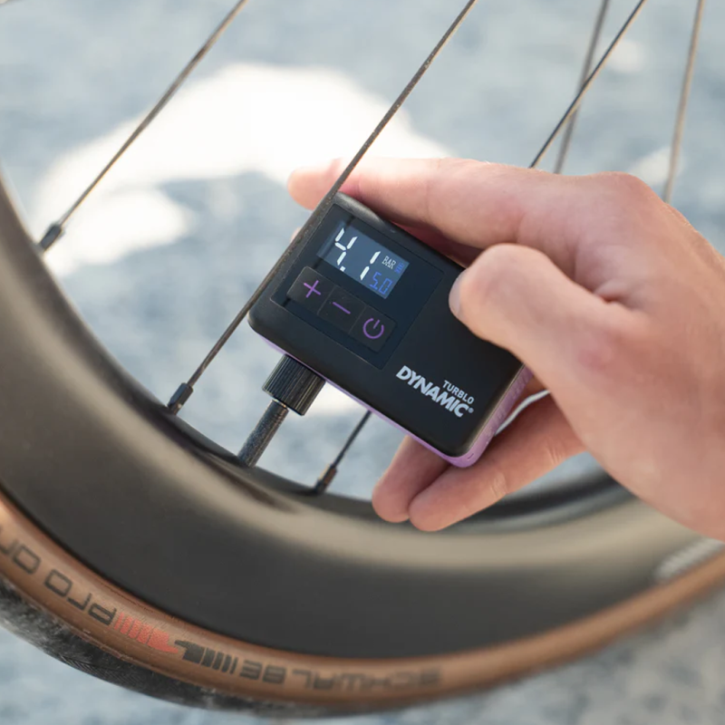 La minibomba eléctrica Dynamic Turblo es la herramienta esencial para inflar rápidamente cualquier cubierta, ya sea en carretera, gravel o montaña. Ultracompacta y con un peso de tan solo 115 g, cabe fácilmente en el bolsillo del maillot o en la bolsa de sillín, ofreciendo un rendimiento profesional. Con su precisa pantalla digital, apagado automático y una presión máxima de 8 bar / 116 PSI, garantiza un inflado rápido, fiable y sin esfuerzo. Compatible con válvulas Presta y Schrader, sustituye eficazmente a las bombas manuales y a los cartuchos de CO₂. Su motor metálico interno, combinado con un avanzado sistema de refrigeración, asegura un funcionamiento silencioso y duradero. La luz LED integrada facilita su uso nocturno, mientras que la batería recargable por USB-C permite múltiples inflados con una sola carga. Turblo: la bomba de repuesto inteligente y compacta que siempre está lista para ayudarte a volver a la bici.