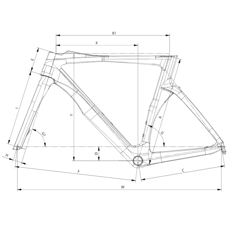 - Cuadro : Oltre Comp, carbono, frenos de disco, compatible con transmisiones electrónicas y mecánicas, cableado interno, dirección de 1.5", eje de pedalier PressFit de 86.5x41 mm, frenos Flat Mount, eje pasante de 12x142 mm, tallas 47-50-53-55-57-59 cm
