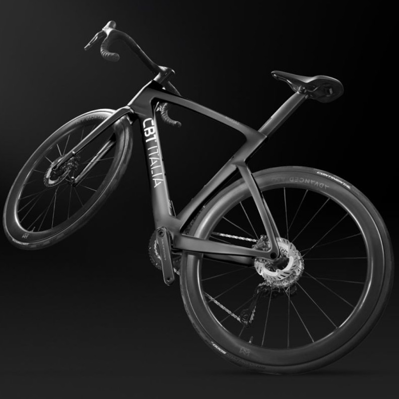 Con un diseño agresivo y curvas musculosas, esta CBT Italia Mystero Dark Black se basa en un cuadro de carbono fabricado con tres fibras diferentes. TORAY T700 (22%) es una fibra de alta resistencia que ofrece una flexión controlada para una mayor comodidad y una mejor absorción de las vibraciones; TORAY T800 (60%) es una fibra rígida y ligera que permite la máxima transferencia de potencia, mientras que la fibra M40J (18%) proporciona mayor rigidez en las zonas de mayor tensión.