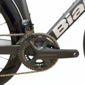 Equipada con el grupo Shimano Ultegra Di2 de 12 velocidades, garantiza cambios de marcha rápidos, suaves y fiables, incluso con cargas pesadas. Las bielas compact 50-34, junto con un cassette 11-30, proporciona una versatilidad óptima, tanto en terrenos ondulados como en recorridos rápidos. Las ruedas de carbono Reparto Corse de 50 mm ofrecen un excelente equilibrio entre aerodinámica, inercia y estabilidad a altas velocidades. El manillar de carbono y los frenos de disco hidráulicos completan una fabricación decididamente centrada en el rendimiento.