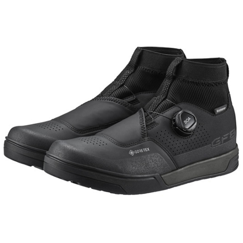 Las zapatillas Shimano GF8G SH-GF800GTX están diseñadas específicamente para ciclistas comprometidos que se enfrentan a senderos húmedos, fríos y exigentes. Gracias a su suela ULTREAD GF de baja temperatura, ofrecen un agarre excepcional en pedales planos, incluso en las condiciones más difíciles. El forro GORE-TEX tipo calcetín, combinado con un cuello elástico, impide la penetración del agua y el frío, garantizando comodidad y calidez durante todo el recorrido.