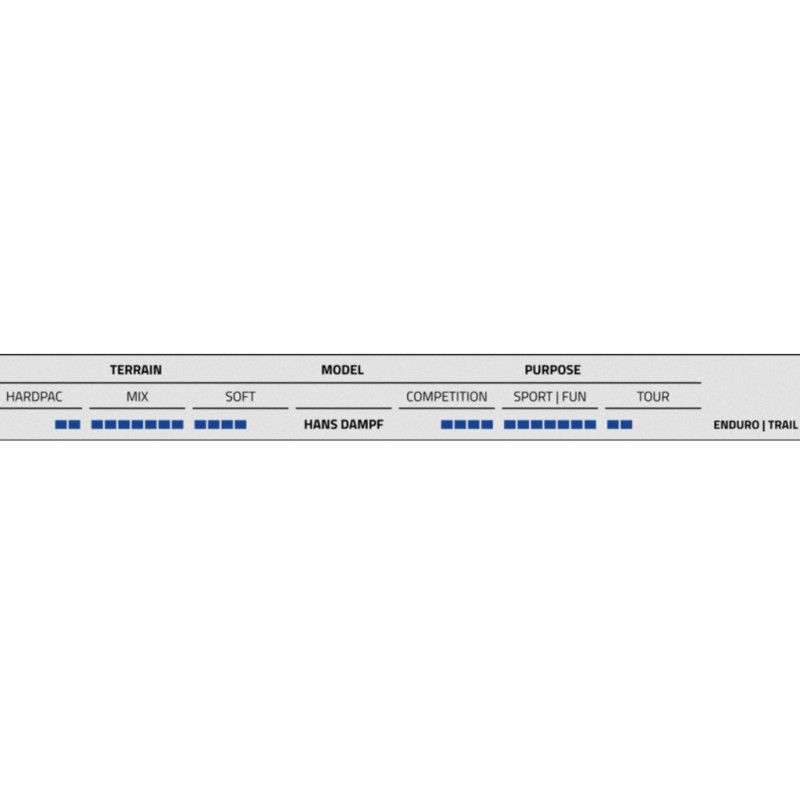Gracias a su fabricación semiabierta, la Hans Dampf se beneficia de excelentes propiedades de autolimpieza, lo que limita la acumulación de barro y mantiene un pilotaje suave.