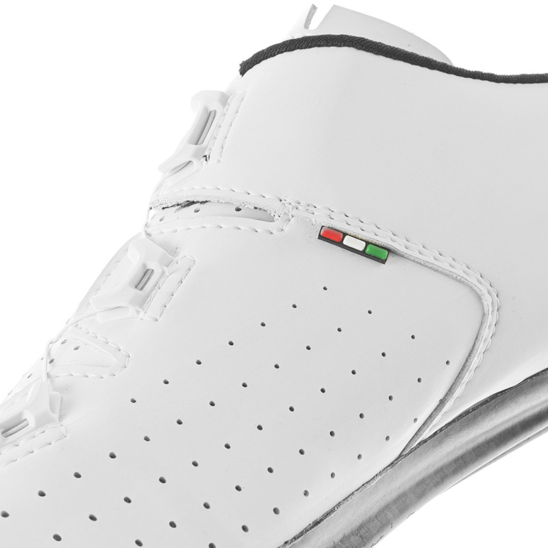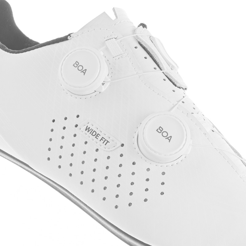 Las zapatillas de carretera Gaerne G.Fuga Wide combinan ligereza y rendimiento para ofrecer una comodidad inigualable en cada salida. Equipadas con el sistema de cierre Boa L6 Dial Z, garantizan una sujeción precisa y uniforme del pie, distribuyendo eficazmente la presión por toda la zapatilla. El sistema Tarsal 1.0 refuerza esta sujeción estabilizando la parte trasera del pie, maximizando así la eficiencia del pedaleo. Con un ajuste más amplio en la versión Wide, estas zapatillas están diseñadas para ciclistas con pies más anchos.