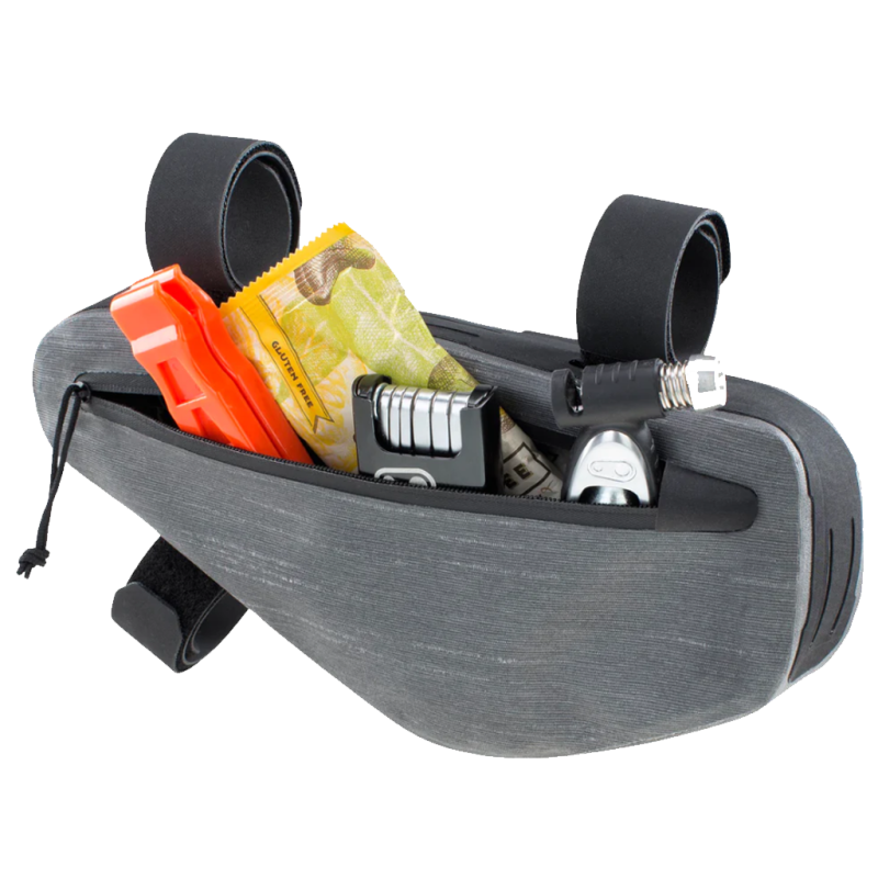 La Evoc Multi Frame Pack WP M es una solución compacta, versátil y completamente impermeable para llevar lo esencial en tus salidas de bikepacking, ya sea gravel, carretera o montaña. Con una capacidad de 1,2 litros, alberga fácilmente herramientas, cámaras de aire y otros accesorios esenciales, manteniéndolos a mano.