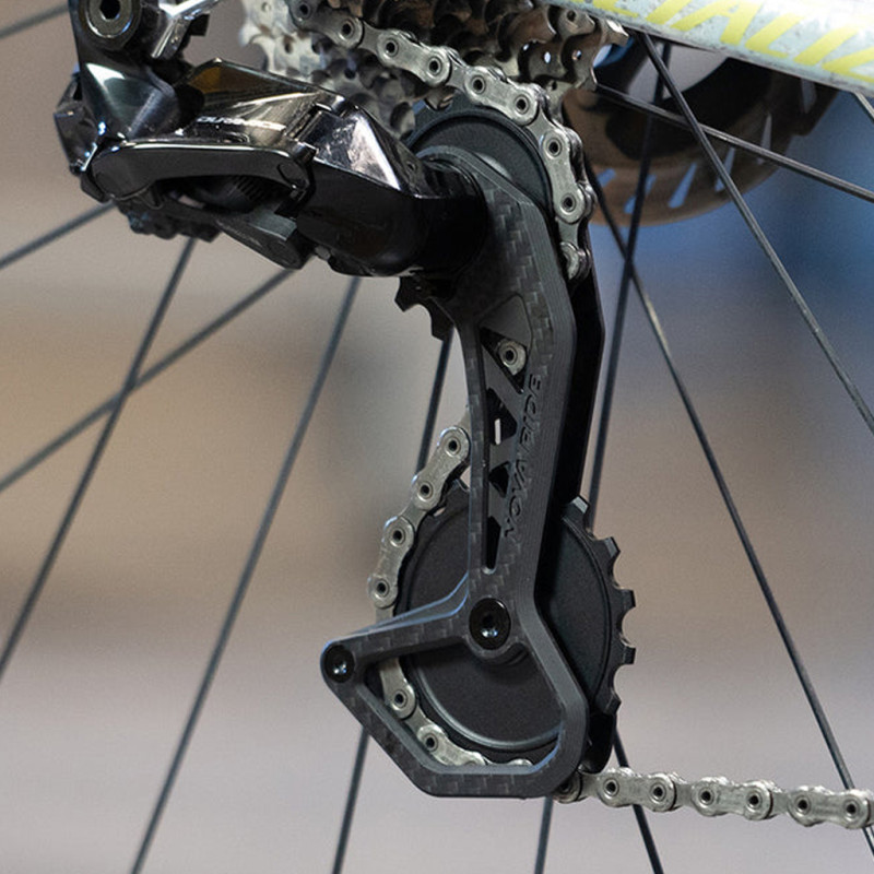 Esta pata de cambio es más rígida gracias a una nueva estructura optimizada para un mayor rendimiento y durabilidad. La pata de cambio de carbono y las roldanas de aluminio presentan una nueva geometría y diferentes grosores para una forma más moderna y ligera. Los rodamientos cerámicos garantizan la máxima suavidad.