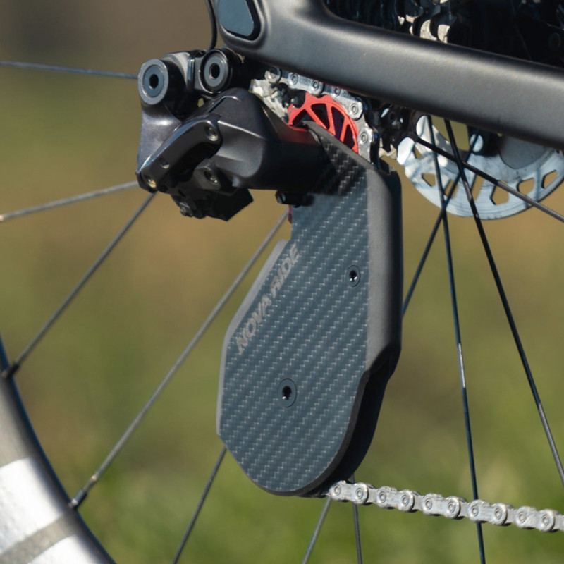 Diseñada mediante software, probada en túnel de viento y validada en las carreteras de Auvernia, cerca de Clermont-Ferrand, esta pata de cambio Nova Ride CCD Aero te ayudará a ganar valiosos vatios. Diseñada para cambios Shimano Ultegra y Dura-Ace de 12 velocidades, esta pata de cambio sobredimensionada redefine la aerodinámica. Las placas de carbono mecanizadas a medida tienen la forma de un ala de avión (cerradas por delante y por detrás) para optimizar la zona frontal, suavizando el flujo de aire y controlando el viento de la parte trasera.