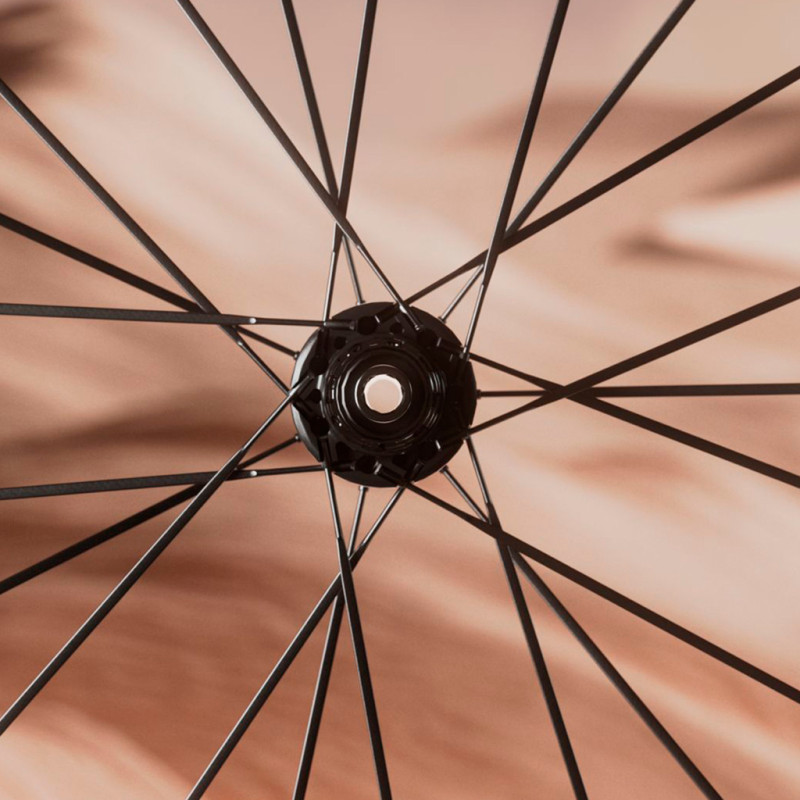 - Radios : 21 radios de carbono Vonoa, perfil aerodinámico de titanio 4x1, 21-21 radiales/cruzados