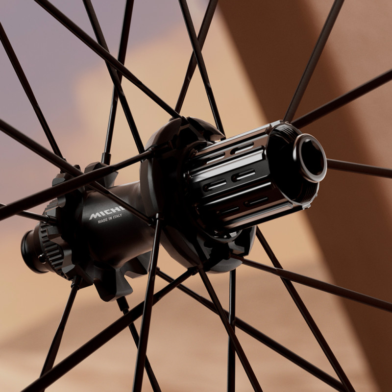 Las ruedas Miche Deva RD 62 están fabricadas con una mezcla de carbono T700/T800/T1000, que ofrece un equilibrio óptimo entre aerodinámica, rigidez y ligereza. Con un ancho interno de 23 mm y compatibilidad con tubeless, estas ruedas garantizan el máximo control y suavidad, además de una mayor seguridad gracias a sus ganchos. Los radios de carbono Vonoa contribuyen a una mayor ligereza y rigidez. La configuración de 14+7 radios y las cabecillas ocultas mejoran la velocidad, a la vez que mejoran la sensación de suavidad y la capacidad de respuesta.