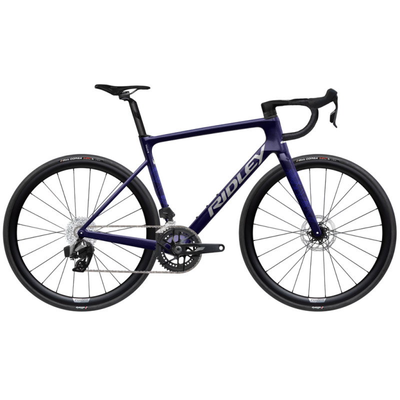 Esta Ridley Falcn FAL26D2s Dark Indigo Silver está equipada con el grupo Shimano 105 Di2, que garantiza cambios rápidos y precisos, así como frenos de disco de alto rendimiento en todas las condiciones. Las ruedas FORZA Skiron38, equipadas con bujes DT Swiss 370, son perfectas para afrontar cualquier terreno, desde montaña hasta llano.