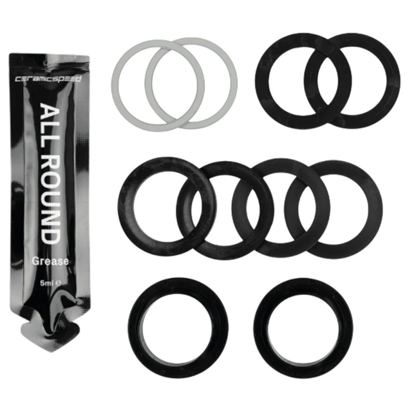 - Contenido del kit : 2 juntas BB ALPHA, 2 tapas antipolvo para rodamientos BB ALPHA, 1 kit de espaciadores BB ALPHA DUB, 1 tubo de 5 ml de grasa CeramicSpeed All Round