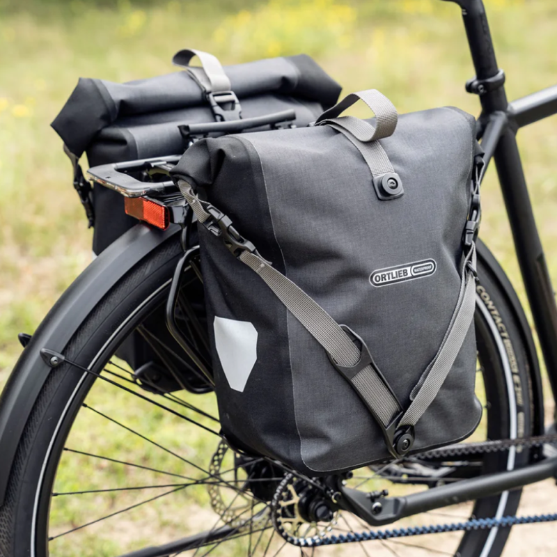 La Ortlieb Sport-Roller Plus es una bolsa para bicicleta versátil, ideal para los desplazamientos diarios y el cicloturismo. Gracias a su compacta capacidad de 14,5 litros, se puede montar en la parte delantera o trasera de un portaequipajes bajo, e incluso es adecuada como primera alforja para la bicicleta de un niño.