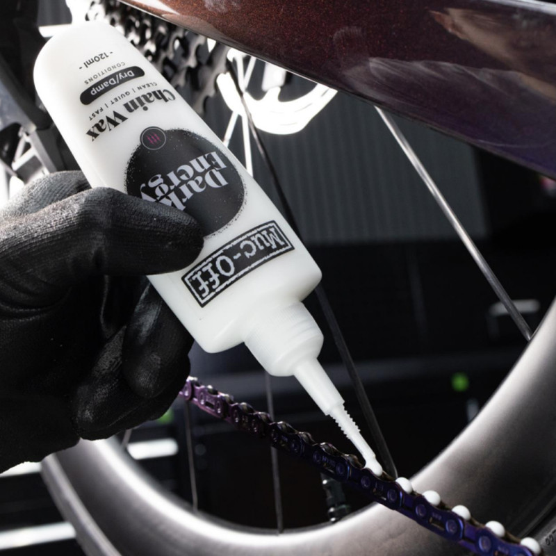 Muc-Off recomienda agitar bien el envase antes de usar. Además, limpie a fondo la transmisión (cadena, cassette, platos y roldanas) y asegúrese de que esté completamente seca antes de la aplicación.