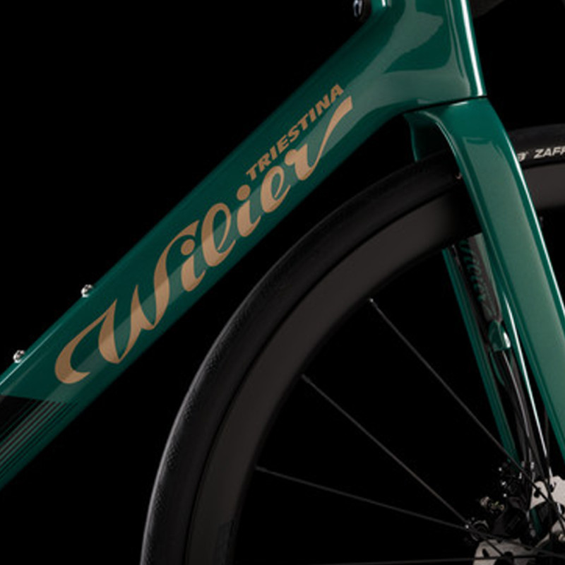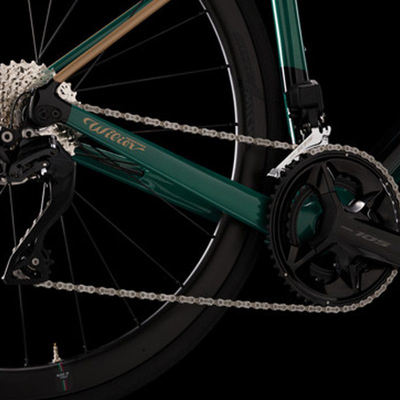 Vélo route Wilier Triestina Garda Shimano 105 Di2 12v Miche Reflex G42 Green Gold Glossy