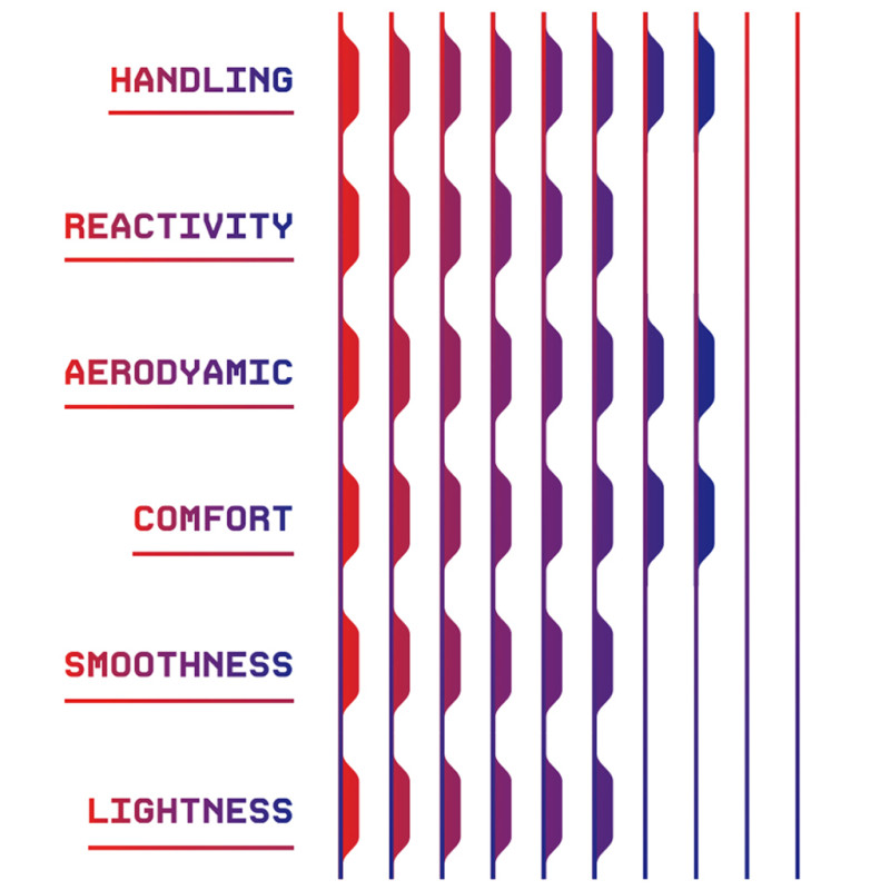 Diseñadas en torno al innovador perfil de llanta 2-Wave Rim, las llantas presentan una altura diferenciada de 42 a 47 mm. Esta forma ondulada optimiza la aerodinámica, mejora la estabilidad con viento lateral y proporciona a las ruedas una sensación dinámica y reactiva. El ancho interno de 25 mm se adapta perfectamente a cubiertas modernas de 29 mm a 76 mm, lo que favorece una mayor comodidad y agarre tanto en carretera como en senderos. La fabricación en carbono FF80 (laminación completa de carbono con resina mate) prioriza la comodidad en largas distancias y terrenos mixtos, manteniendo al mismo tiempo una impresionante rigidez lateral y capacidad de respuesta.